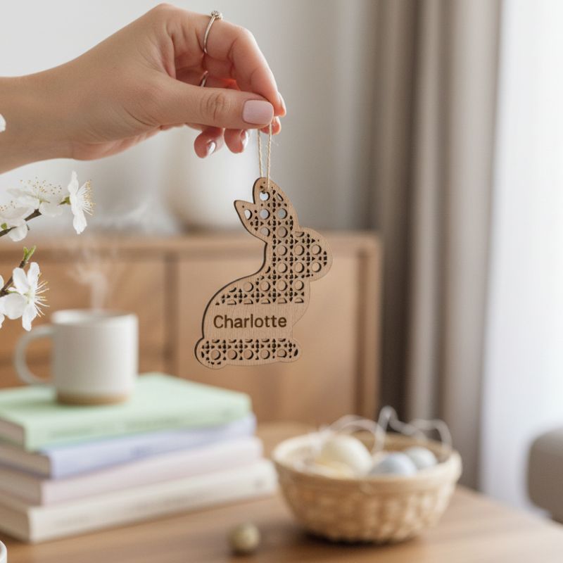 Wood Lattice Easter Bunny Name Tag with Personalized Name